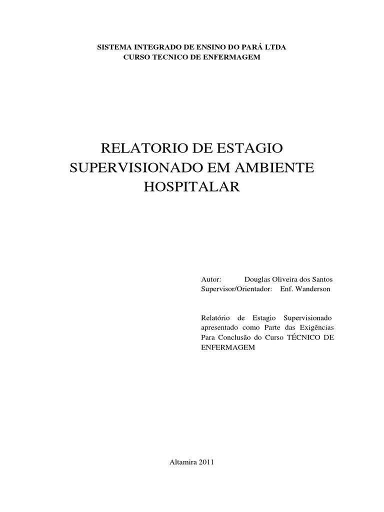 Um relatório de uma actividade prática, é uma exposição escrita de um determinado trabalho ou experiência laboratorial. Monografia de enfermagem by leidianekanall 3209 views. O presente relatório de estágio supervisionado descreve as características e práticas observadas, conforme exigência legal do colegiado do curso de licenciatura em enfermagem por meio da. Educacao_fisica, enfermagem, nutricao, pedagogia, terapia_ocupacional, servicos_sociais. Posted on 07/09/201511/09/2015 by a enfermagem e as leis.